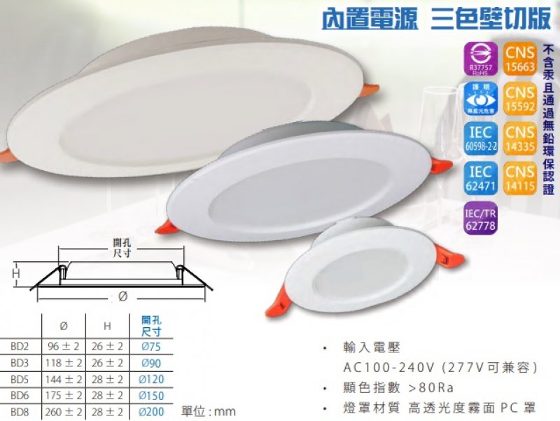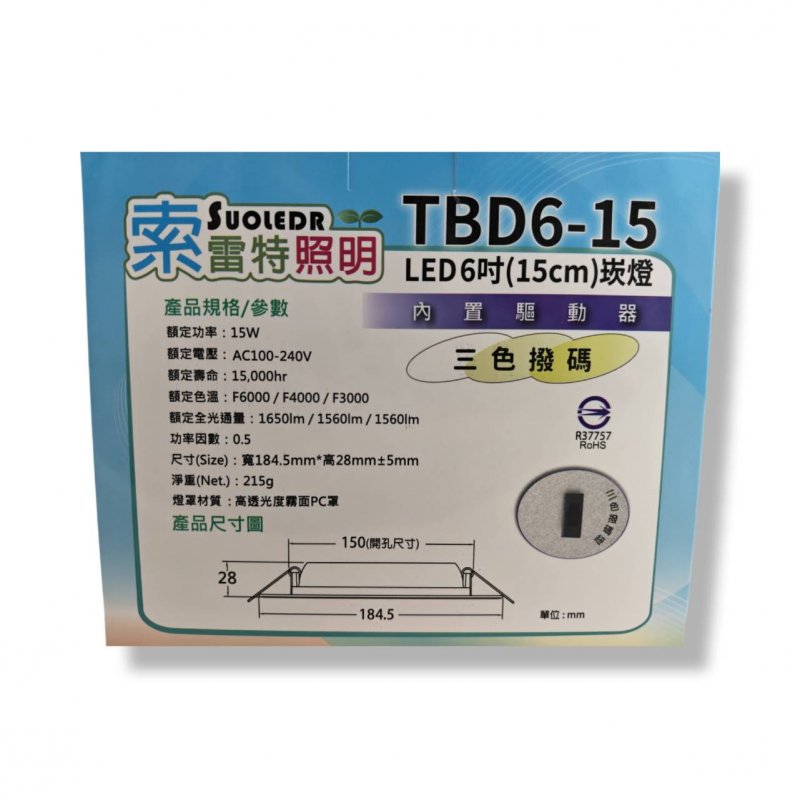 台灣大廠~15公分LED崁燈 一盞燈實現三種光顏色~壁切三段式三色光 白光/自然光/黃光 5CM15W崁燈 壁切變色 燈
